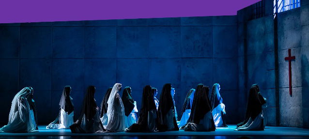 Palacio de Festivales de Cantabria. Dialogues des Carmélites. Ópera en tres actos y doce cuadros. Música de Francis Poulenc. Libreto de Francis Poulenc. Dirección de escena, escenografía e iluminación, Francisco López. Vestuario, Erregiñe Arrotza. Maite Alberola (Blanche de la Force), Ana Ibarra (Madame de Croissy), Jessica Stavros (Madame Lidoine), Egle Wyss (Madre Marie), Mar Morán (Sor Constance), Alejandro del Cerro (Caballero de la Force), Pablo Ruiz (Marqués de la Force), Luis Pacetti (Capellán), Beatriz Lanza (Madre Jeanne), José Manuel Montero (Comisario primero), Juan Laborería (Comisario segundo y carcelero), Pablo López (Thierry y oficial), César Marañón (Monsieur Javelinot), Sara Castrillo (Sor Mathilde). Coro Joven de Santander (director, César Marañón). Coro Lírico de Cantabria (directora, Elena Ramos). Oviedo Filarmonía. Dirección musical, Pedro Halffter. Asistencia: 50% del aforo (1.500 personas).