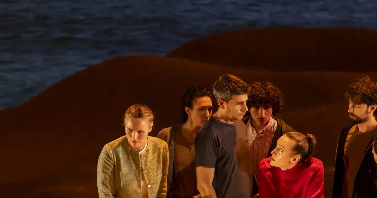 Igualmente actual es la puesta en escena, también al servicio de la música, aunque sin duda significativa por sí misma, con pocos objetos de atrezo, localizada en un exterior próximo al mar -admitió Rigola que optó por exteriores para no añadir más ahogo a un texto dramático ya de por sí opresivo- y en la que una luz, paulatinamente cambiante, cumple una función esencial. Evoluciona desde lo dorado y refulgente hasta el gris azulado de la soledad final, pasando por los ocres y rojos de los momentos de mayor presión, y, de algún modo, ejerce de contrapunto a la densidad sonora.